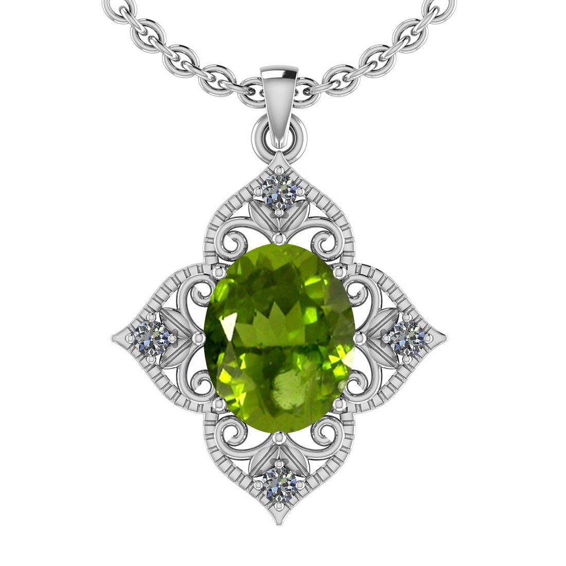 Certified 3.75 Ctw I2/I3 Peridot And Diamond 10K White **|**|** Center Stone Approx Weight: 3.63 Ctw (Oval Cut) Center Stone Color: Peridot Center Stone Setting: Prong Side Stone 0.12 Ctw Side Stone Color: J-K Stone Clarity: I2/I3 Stone Setting: Prong Metal Approx Weight: 2.40 Gram 10K White Gold Pendant