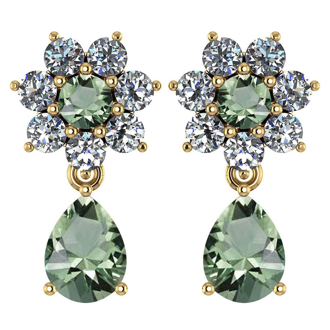 Certified 4.86 Ctw Green Amethyst And Diamond 14k Yello **|**|** Center Stone Weight ; 3.00 Ctw (2 Pcs Pear) Top Stone Weight : 0.46 (2 Pcs Round) Center Stone Color: Green Amethyst Center Stone Setting ; Prong Side Stone 1.40 ctw Side Stone Color: White J-K Diamond Side Stone Setting: Prong Side Stone Clarity: VS/SI1 Metal Color Yellow Gold Metal Weight : Approx 3.48 Gram 14K Yellow Gold Halo Dangling Earring