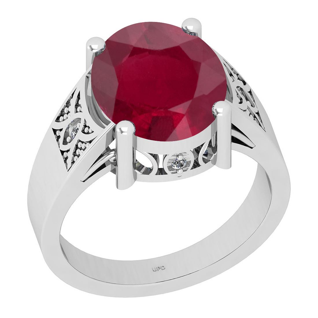 Certified 4.94 Ctw I2/I3 Ruby And Diamond 14K White Gol **|**|** Center Stone Approx Weight: 4.90 Ctw (Oval Cut) Center Stone Color: Ruby Center Stone Setting: Prong Side Stone 0.04 Ctw Side Stone Color: J-K Stone Clarity : I2/I3 Stone Setting: Prong Metal Approx Weight: 4.20 Gram 14K White Gold Ring Size: 6 (Free Sizing Avail)