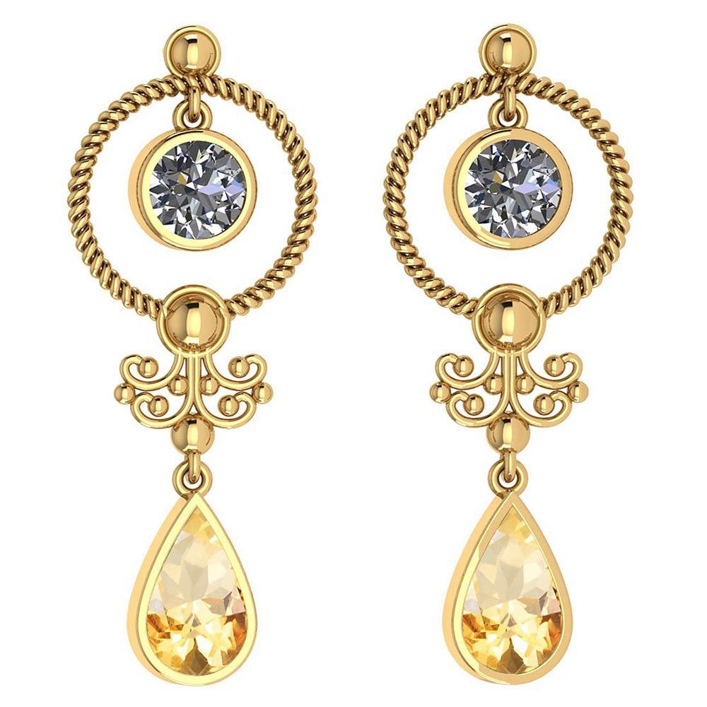 Certified 5.18 Ctw Citrine And Diamond SI2/I1 Dangling **|**|** Center Stone Approx Weight ; 3.50 Ctw (2 Pcs Pear) Center Stone Color: Citrine Center Stone Setting ; Bezel Side Stone (2 Pcs Round Diamond) 1.68 ctw Side Stone Color: White G-H Diamond Side Stone Setting: Bezel Stone Clarity: SI2/I1 Metal Approx Weight: 5.10 Gram 14K Yellow Gold Dangling Earrings Made In USA