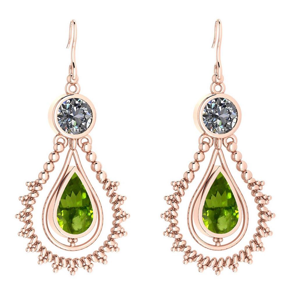 Certified 5.18 Ctw Peridot And Diamond SI2/I1 Dangling **|**|** Center Stone Approx Weight ; 3.50 Ctw (2 Pcs Pear) Center Stone Color: Peridot Center Stone Setting ; Bezel Side Stone (2 Pcs Round Diamond) 1.68 ctw Side Stone Color: White G-H Diamond Side Stone Setting: Bezel Stone Clarity: SI2/I1 Metal Approx Weight: 6.00 Gram 14K Rose Gold Dangling Earrings Made In USA