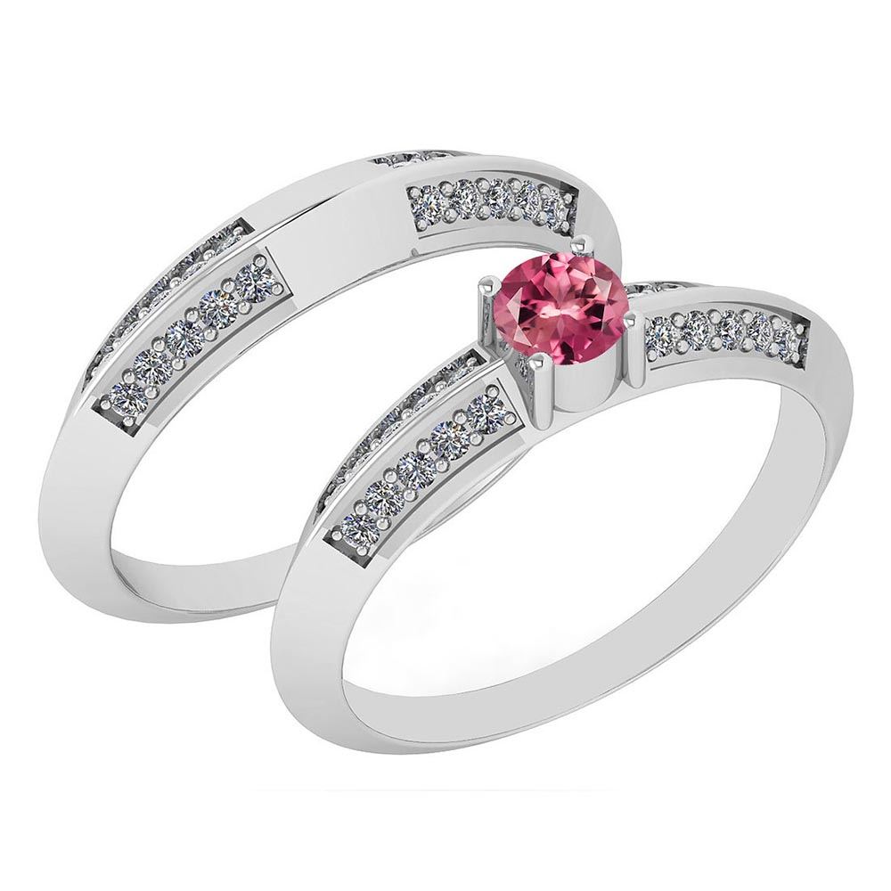Certified .55 Ctw Pink Tourmaline And Diamond Wedding/E **|**|** Center Stone Approx Weight 0.23 Ctw (1 Pcs Round) Center Stone Color: Pink Tourmaline Center Stone Setting: Prong Side Stone Weight: 0.32 Ctw (40 Pcs Round Cut Diamond) Side Stone Color: White G-H Diamond Stone Clarity: VS/SI1 Center Stone Setting ; Prong Metal Weight: Approx 3.92 Gram 14K White Gold Halo Ring