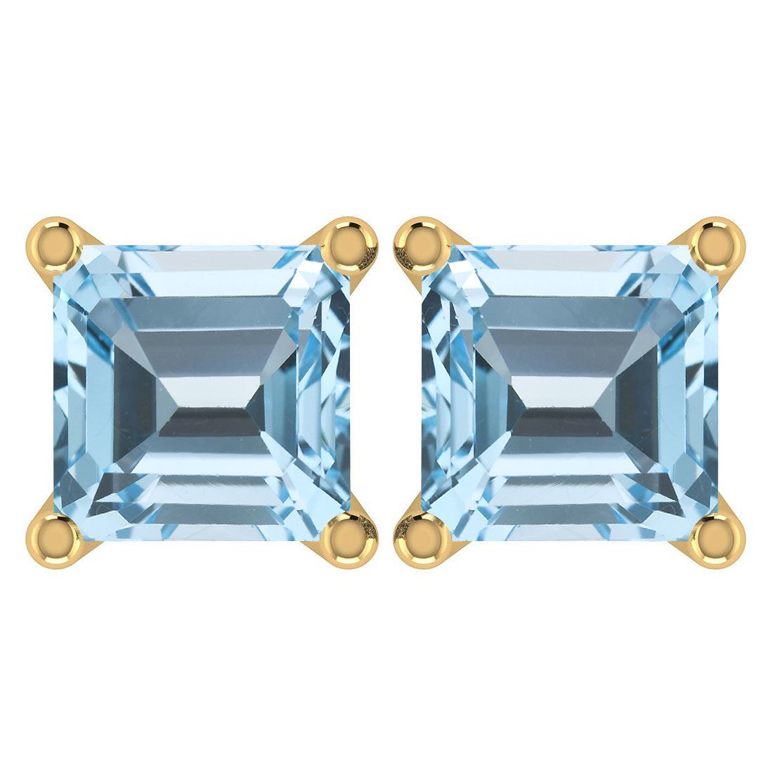 Certified 6.00Ctw Genuine Blue Topaz 14K Yellow Gold St **|**|** Stone Weight ; 6.00 Ctw (2 Pcs Square Cut Stone) Stone Color: Blue Topaz Center Stone Setting ; Prong Metal Color: Yellow Gold Metal Approx Weight: 1.73 Gram 14K Yellow Gold Stud Earrings Made In USA