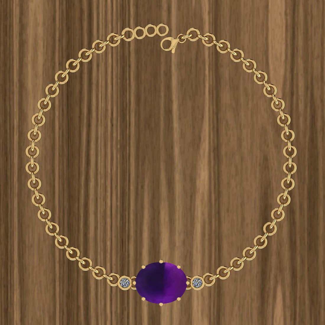 Certified 7.11 Ctw Amethyst And Diamond I2/I3 14K Gold **|**|** Center Stone Approx Weight: 7.00 Ctw (1 pcs Oval Cabochon) Center Stone Color: Amethyst Center Stone Setting: Prong Side Stone Approx Weight: 0.11 Ctw Side Stone Color: J-K Stone Clarity: I2/I3 Stone Setting: Prong Metal Approx Weight: 6.00 Gram 14K Rose Gold Bracelet