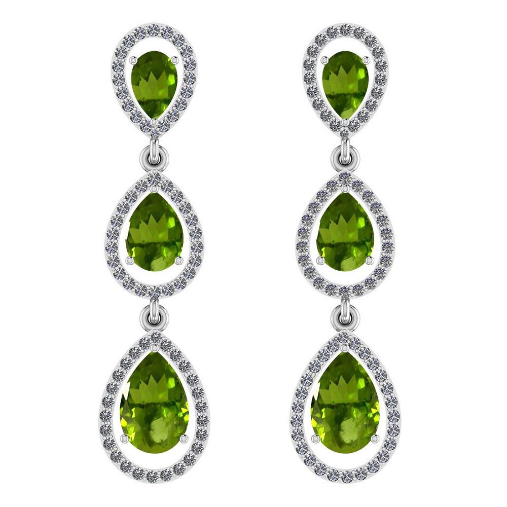 Certified 7.31 Ctw Peridot And Diamond VS/SI1 Dangling **|**|** Center Stone Approx Weight ; 6.50 Ctw (6 Pcs Pear) Center Stone Color: Peridot Center Stone Setting ; Prong Side Stone (136 Pcs Round Diamond) 0.81 ctw Side Stone Color: White G-H Diamond Side Stone Setting: Pave Stone Clarity: VS/SI1 Metal Approx Weight: 4.40 Gram 14K White Gold Dangling Earrings Made In USA