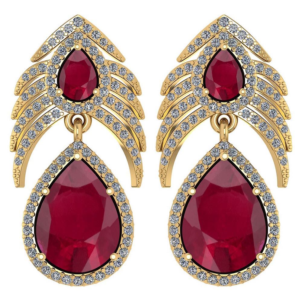 Certified 7.38 Ctw Ruby And Diamond Pear Shape Hangling **|**|** Center Stone Approx Weight 6.50 Ctw (4 Pcs Pear) Center Stone Color: Ruby Center Stone Setting: Prong Side Stone Weight: 0.88 Ctw (190 Pcs Round Cut Diamond) Side Stone Color: White G-H Diamond Stone Clarity: VS/SI1 Center Stone Setting ; Prong Metal Weight: Approx 5.70 Gram 14K Yellow Gold Hanging Earringss