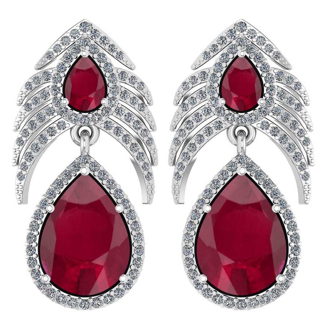 Certified 7.38 Ctw Ruby And Diamond Pear Shape Hangling **|**|** Center Stone Approx Weight ; 6.50 Ctw (4 Pcs Pear) Center Stone Color: Ruby Center Stone Setting: Prong Side Stone Weight: 0.88 Ctw (190 Pcs Round Cut Diamond) Side Stone Color: White G-H Diamond Stone Clarity: SI2/I1 Center Stone Setting ; Prong Metal Weight: Approx 5.70 Gram 14K White Gold Hanging Earrings