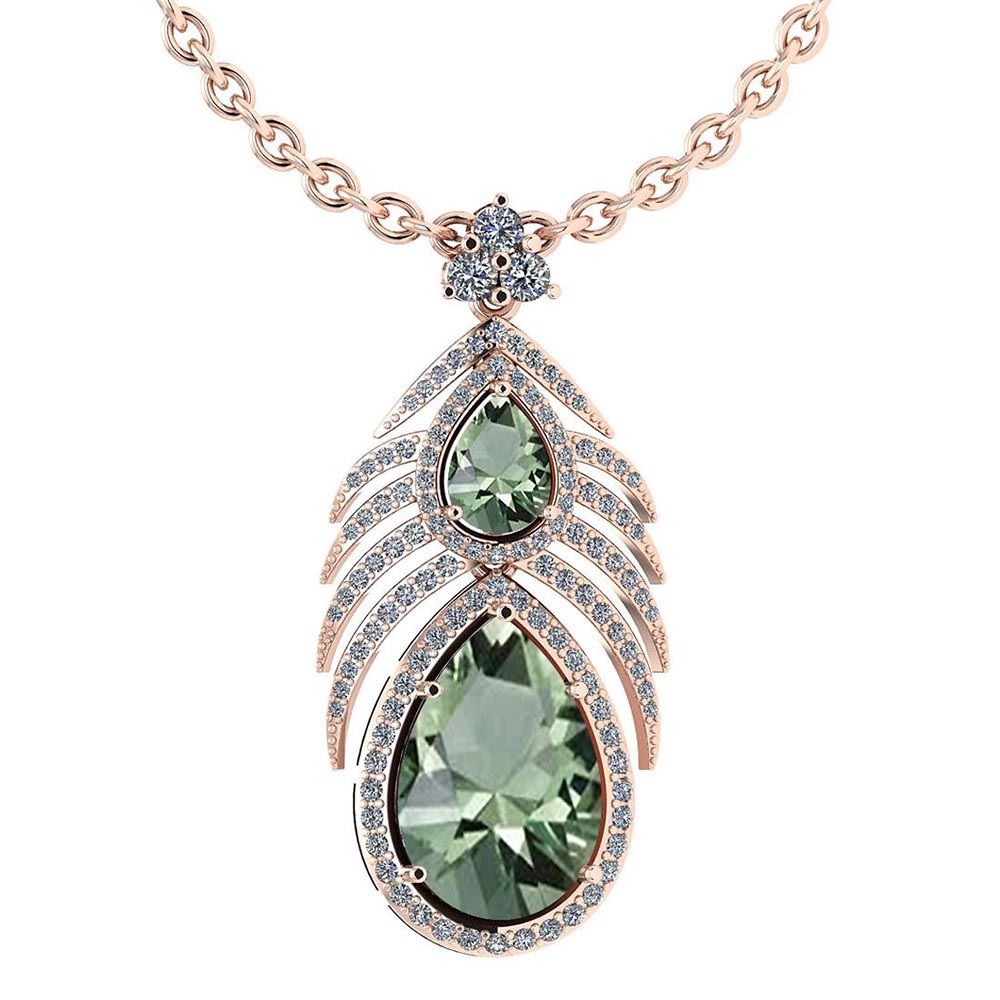 Certified 7.50 Ctw Green Amethyst And Diamond Pear shap **|**|** Center Stone Approx Weight ; 6.50 Ctw (2 Pcs Pear)Center Stone Color: Green Amethyst Center Stone Setting: Prong Side Stone Weight: 0.74 Ctw (116 Pcs Round Cut Diamond) Side Stone Color: White G-H Diamond Stone Clarity: VS/SI1 Center Stone Setting ; Prong Metal Weight: Approx 5.60 Gram 14K Rose Gold Necklace