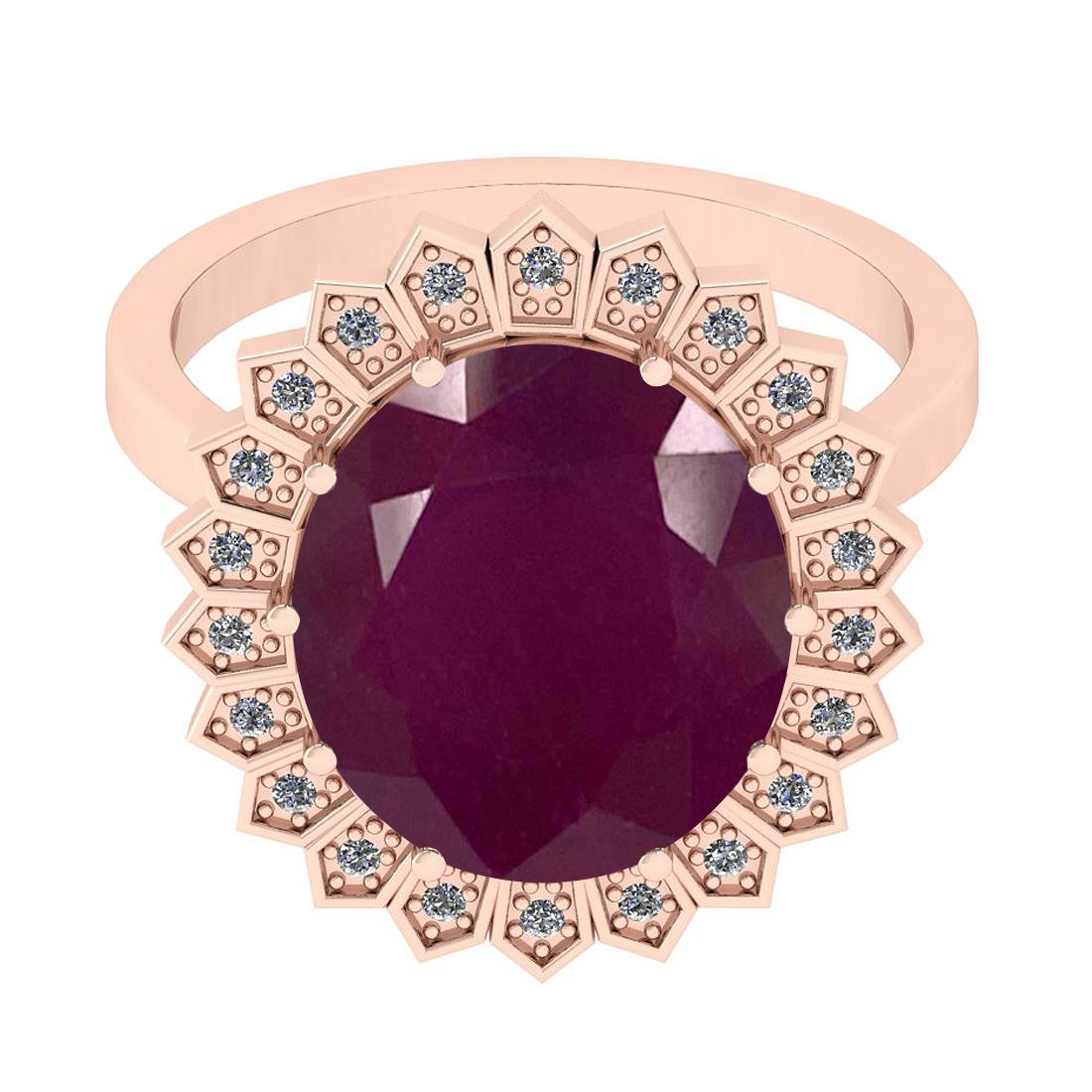 Certified 9.15 Ctw SI2/I1 Ruby And Diamond 14K Rose Gol **|**|** Center Stone Approx Weight: 9.04 Ctw (Oval Cut) Center Stone Color: Ruby Center Stone Setting: Prong Side Stone 0.11 Ctw Side Stone Color: J-K Stone Clarity: SI2/I1 Stone Setting: Prong Metal Approx Weight: 6.20 Gram 14K Rose Gold Ring Size: 6 (Free Sizing Avialable 4.5 - 9)