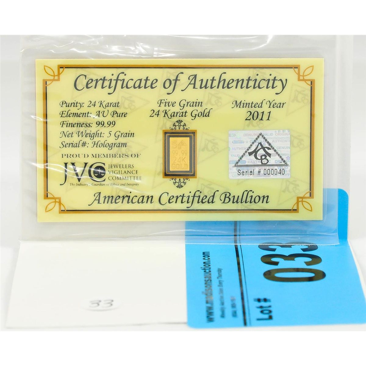 Certified .999 Solid Gold Bar