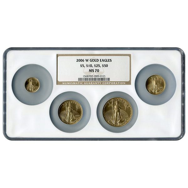 Certified American Gold Eagle 4pc Set MS70 NGC Large Ho **|**|** Certified American Gold Eagle 4pc Set MS70 NGC Large Holder (Date of our choice) ; MSRP: $0