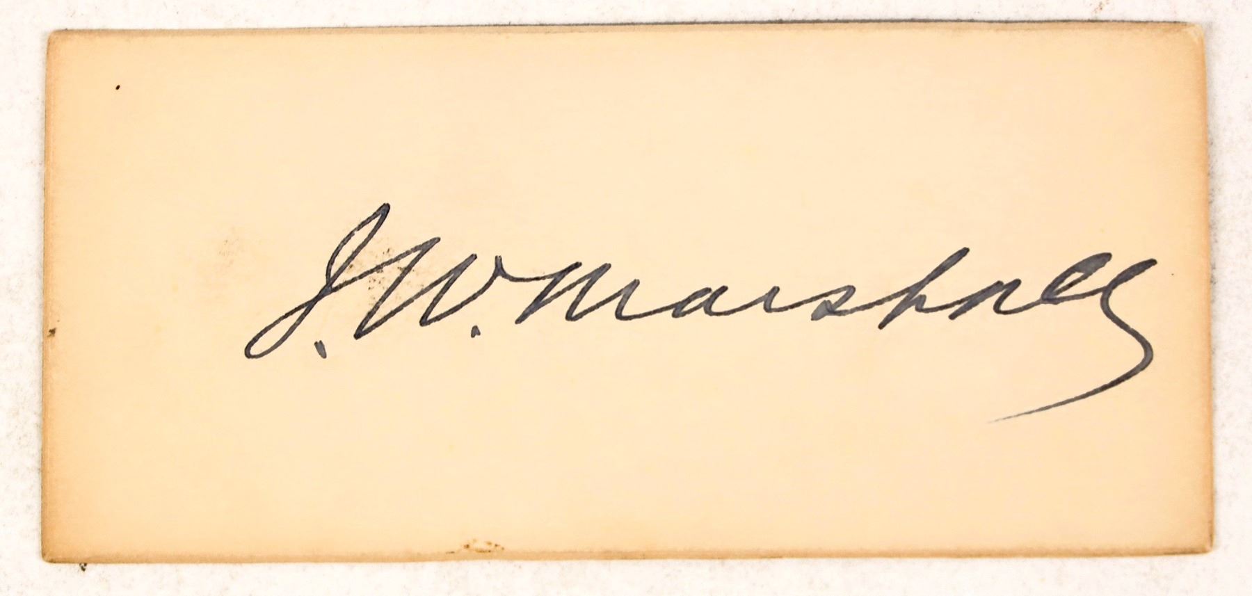 The most famous US person of this specific name was john Marshall, discoverer of gold in Coloma, 1848. When Marshall was old, he had no money, and sold his autograph on pre-printed cards. He died in 1885.