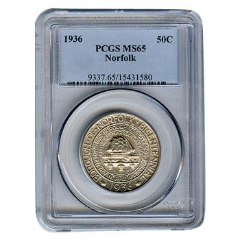 Certified Commemorative Half Dollar 1936 Norfolk MS65 P **|**|** Certified Commemorative Half Dollar 1936 Norfolk MS65 PCGS ; MSRP: $750