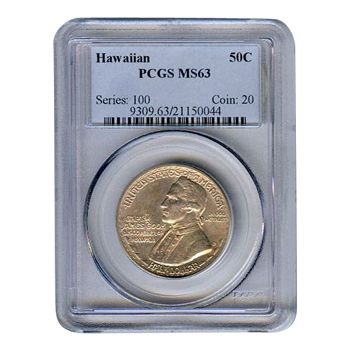 Certified Commemorative Half Dollar Hawaiian MS63 PCGS **|**|** Certified Commemorative Half Dollar Hawaiian MS63 PCGS ; MSRP: $5000