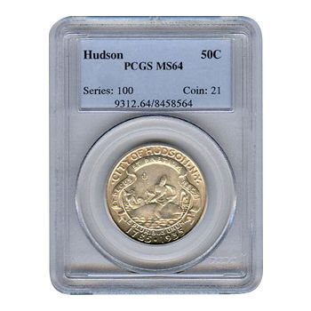 Certified Commemorative Half Dollar Hudson MS64 PCGS **|**|** Certified Commemorative Half Dollar Hudson MS64 PCGS ; MSRP: $1600