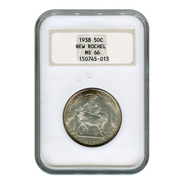 Certified Commemorative Half Dollar New Rochel 1938 MS6 **|**|** Certified Commemorative Half Dollar New Rochel 1938 MS66 NGC ; MSRP: $850