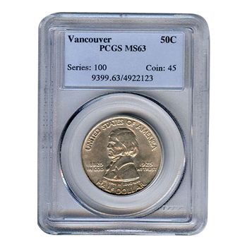 Certified Commemorative Half Dollar Vancouver MS63 PCGS **|**|** Certified Commemorative Half Dollar Vancouver MS63 PCGS ; MSRP: $625