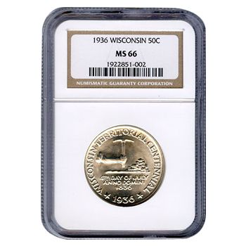 Certified Commemorative Half Dollar Wisconsin 1936 MS66 **|**|** Certified Commemorative Half Dollar Wisconsin 1936 MS66 NGC ; MSRP: $550