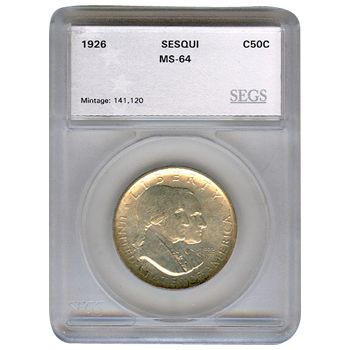Certified Early Commemorative 1926 Sesqui MS64 SEGS **|**|** Certified Early Commemorative 1926 Sesqui MS64 SEGS ; MSRP: $500