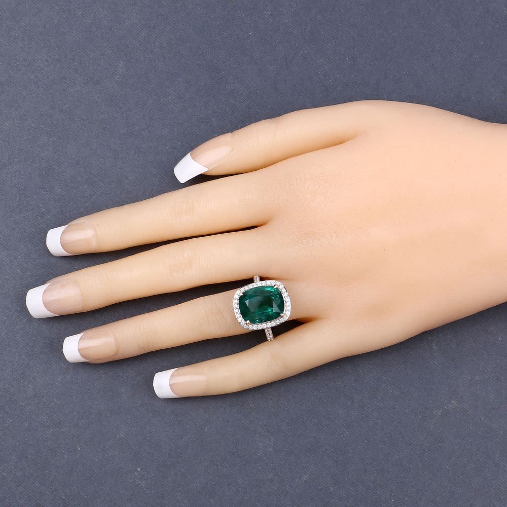 DESCRIPTION DETAIL: Genuine Emerald and Earth-Mined Diamond Ring