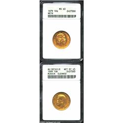 Certified European Gold: Netherlands 10 Gulden 1879, MS63 ANACS and Russia 10 Roubles 1899, AU Detai