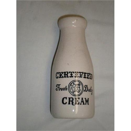 Certified Fresh Daily Cream Jug. Very nice Vintage cream bottle & shows age well. Great for decoration items in your showcase or collection. It shows age crack in the porcelain and it looks really great. It is 6.75" H X 2" on Top X 3" Base Diam. Hope you like it. Happy holidays.