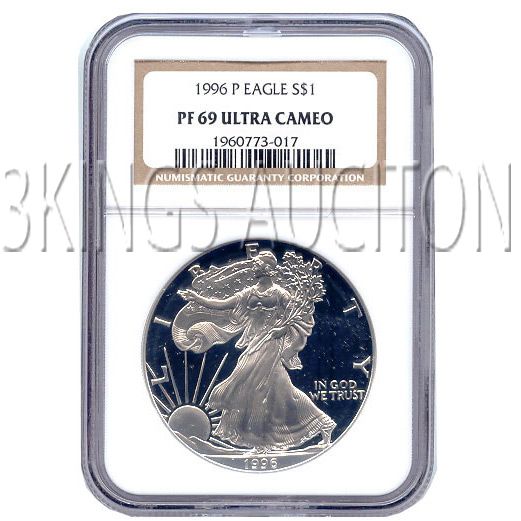 Certified Proof Silver Eagle PF69 1996 **|**|** Certified Proof Silver Eagle PF69 1996 ; MSRP: $200