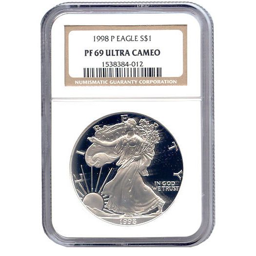 Certified Proof Silver Eagle PF69 1998 **|**|** Certified Proof Silver Eagle PF69 1998 ; MSRP: $155
