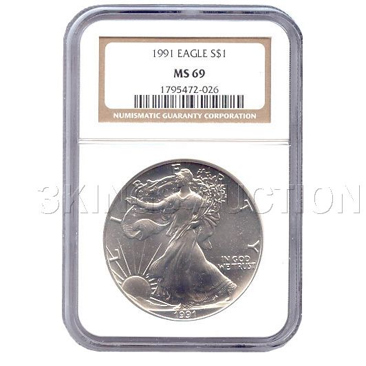 Certified Uncirculated Silver Eagle 1991 MS69 **|**|** Certified Uncirculated Silver Eagle 1991 MS69 ; MSRP: $100