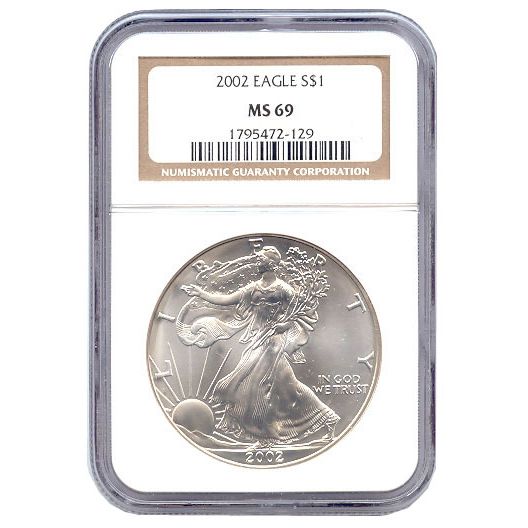 Certified Uncirculated Silver Eagle 2002 MS69 **|**|** Certified Uncirculated Silver Eagle 2002 MS69 ; MSRP: $150