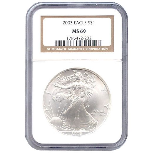 Certified Uncirculated Silver Eagle 2003 MS69 **|**|** Certified Uncirculated Silver Eagle 2003 MS69 ; MSRP: $150