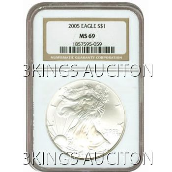 Certified Uncirculated Silver Eagle 2005 MS69 **|**|** Certified Uncirculated Silver Eagle 2005 MS69 ; MSRP: $100