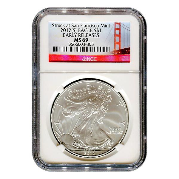 Certified Uncirculated Silver Eagle 2012(S) (Struck at **|**|** Certified Uncirculated Silver Eagle 2012(S) (Struck at the San Francisco Mint) MS69 Early Release ; MSRP: $130