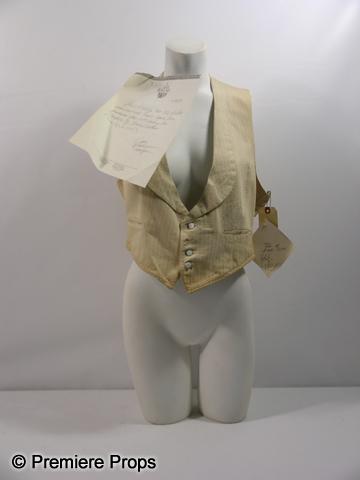Cesar Romero played this character in a string of westerns from 1939-1941. Here is a production made vest attributed to those films. A beige vest with buttons on the front, two front pockets, with self belt in the back. (20th Century Fox label inside)