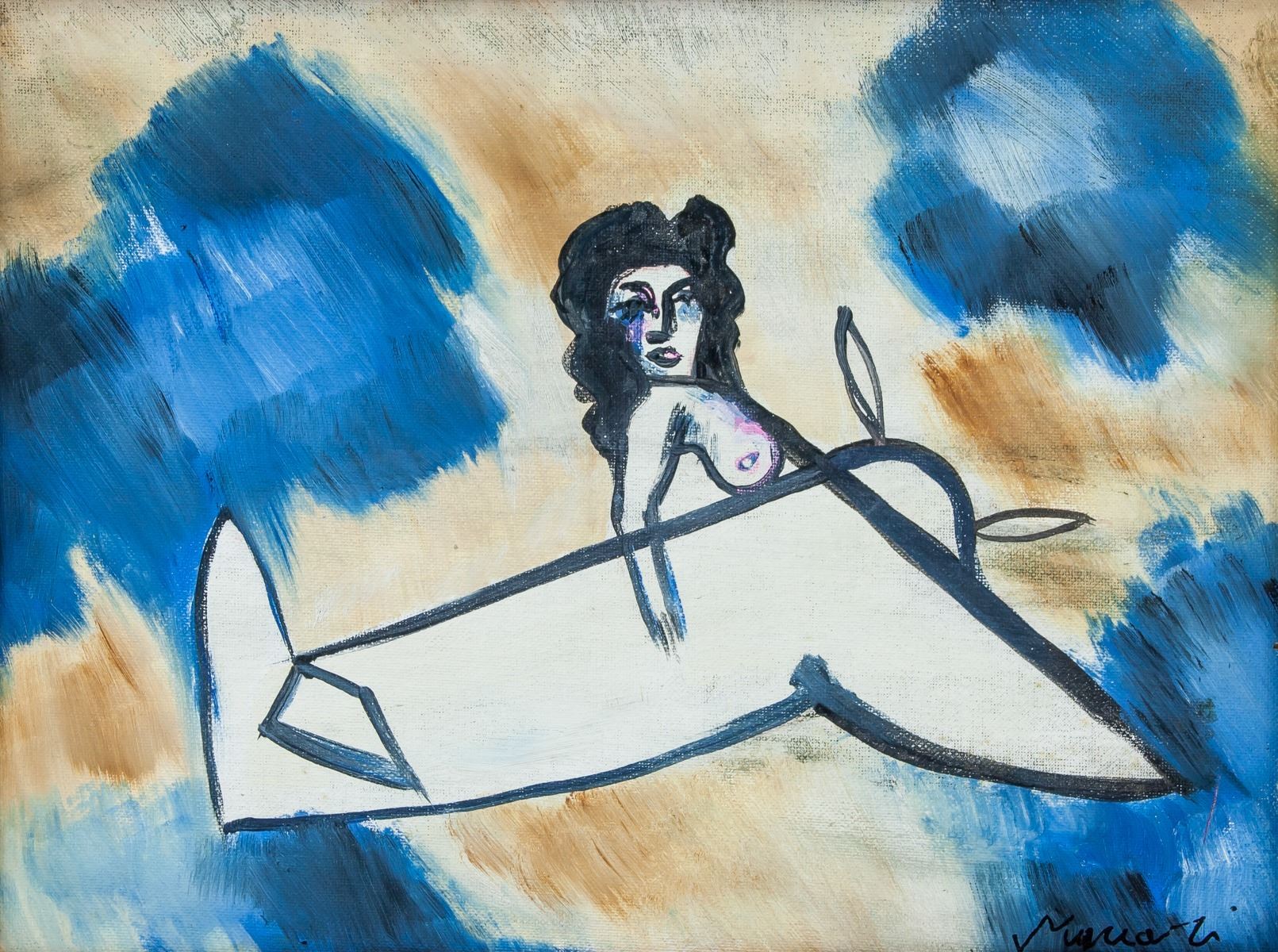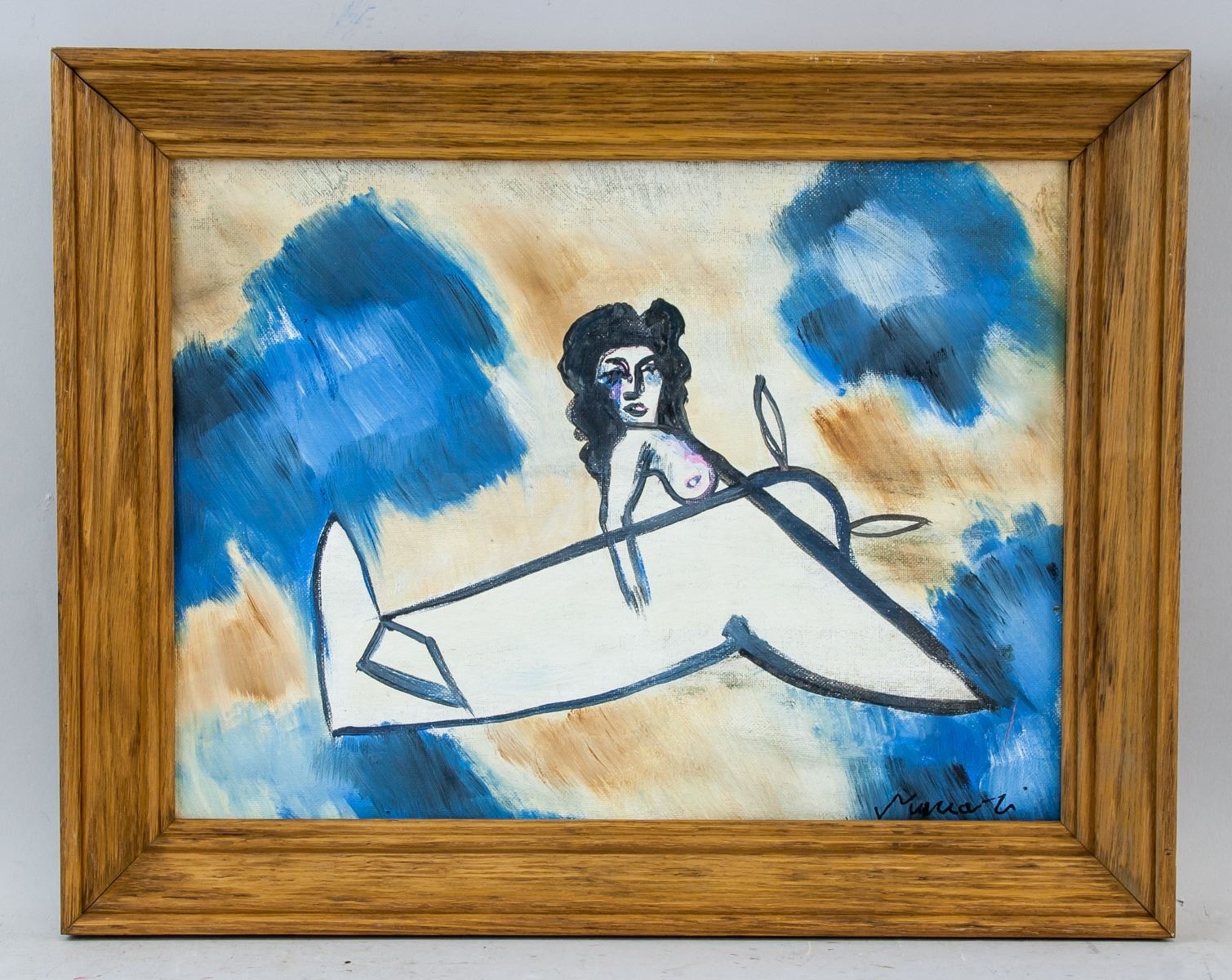 Oil on canvas, framed. Featuring a figure on a plane. Signed Maccari on the lower edge and on verso. Attributed to Cesare Maccari (1840-1919, Italian). 22.5 x 29 cm (8.9 x 11.4 inches). Frame size: 29 x 36.5 cm (11.4 x 14.3 inches). PROVENANCE: Southern Ontario estate