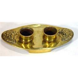 Ceschutzt brass oak leaf design ink well, marks to base, 28cm long…