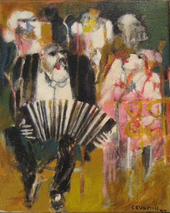 Ceverino, , , Accordionist, 1993, Oil on canvas, 21.5x18cm, Signed and dated., , , , ,
