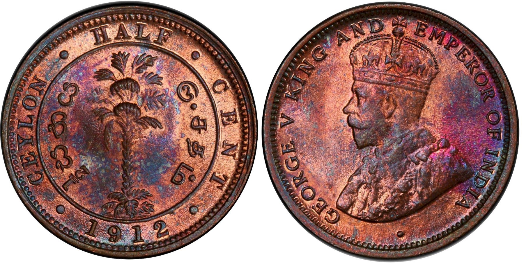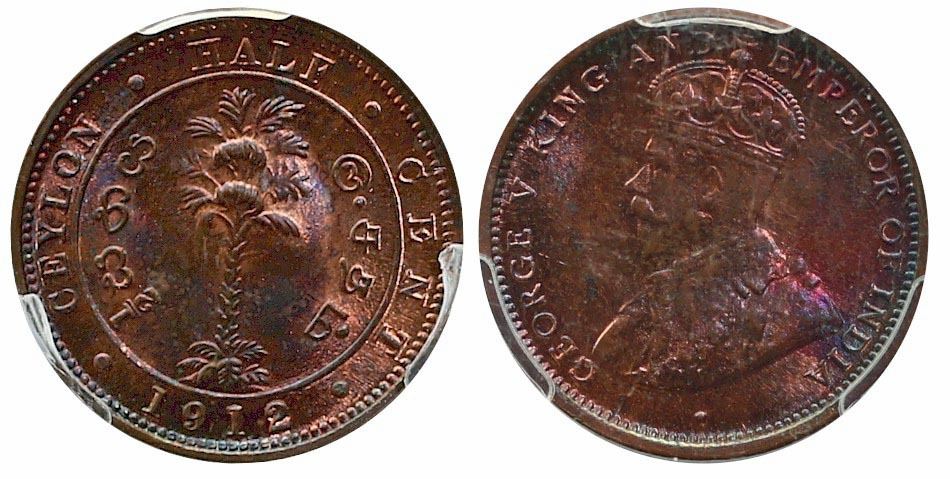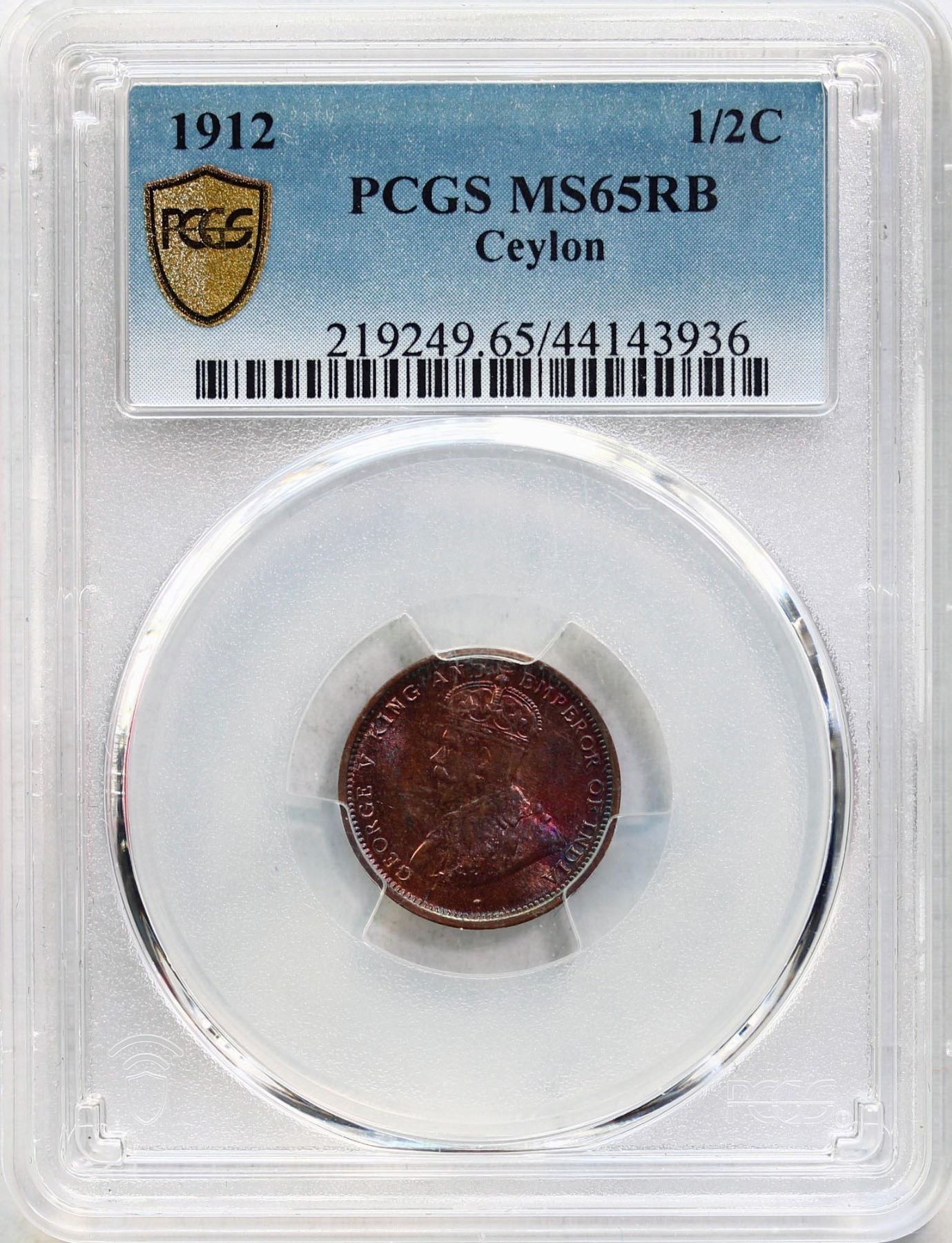 Ceylon; 1912 1/2¢ PCGS MS65RB. A sharp lustrous example.