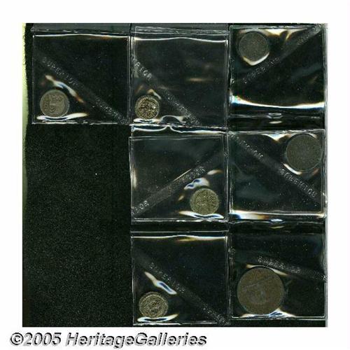 <B>George III Herd of Elephants, </B></I>a nice collection of copper and silver issues, all ex-Goodman Sale 1995 with lot numbers noted: Copper 1/192, 1/96 and 1/48 Rixdollar 1802 KM73-75, F-VF (Lot 47), and Silver 24 Stivers KM76 1808, toned VF, (Lot 51), 48 Stivers KM77 1804 Fine (Lot 55) and toned VF-XF (Lot 53) and 1809, VF, (Lot 58.) A great selection with an important pedigree! <B>Sold as is, no return lot.</B></I>
