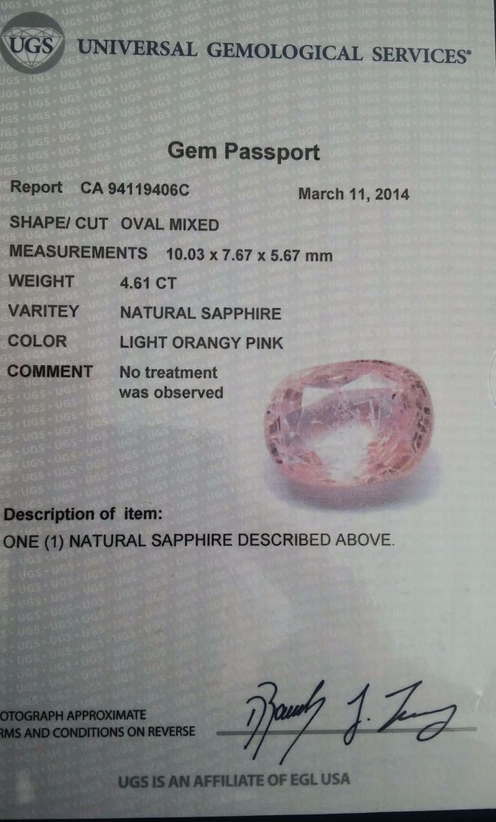 Stunning....4.61 ct....baby pink..(rare color)...Ceylone pink sapphire..guranteed earth mined & no treatment in any way.....oval shape..certified by EGL.....msrp 6500
