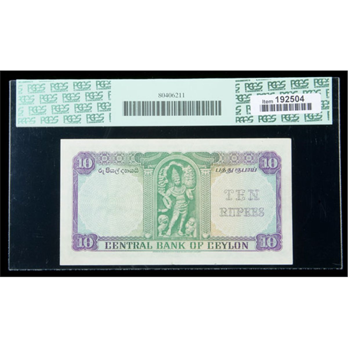 Ceylon SCWPM# 55a, 16.10.1954 10 Rupees. PCGS Choice About New 58PPQ. . Fr-P-55a. A single bend in the paper prevented a higher grade on this fresh and original Ten Rupee piece.