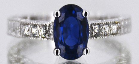 14kt White Gold 3.05 Approx grams including, 1.65ct Ceylon Blue Sapphire Oval, .13ctw Round Diamond G-H color VS-SI clarity,size 6