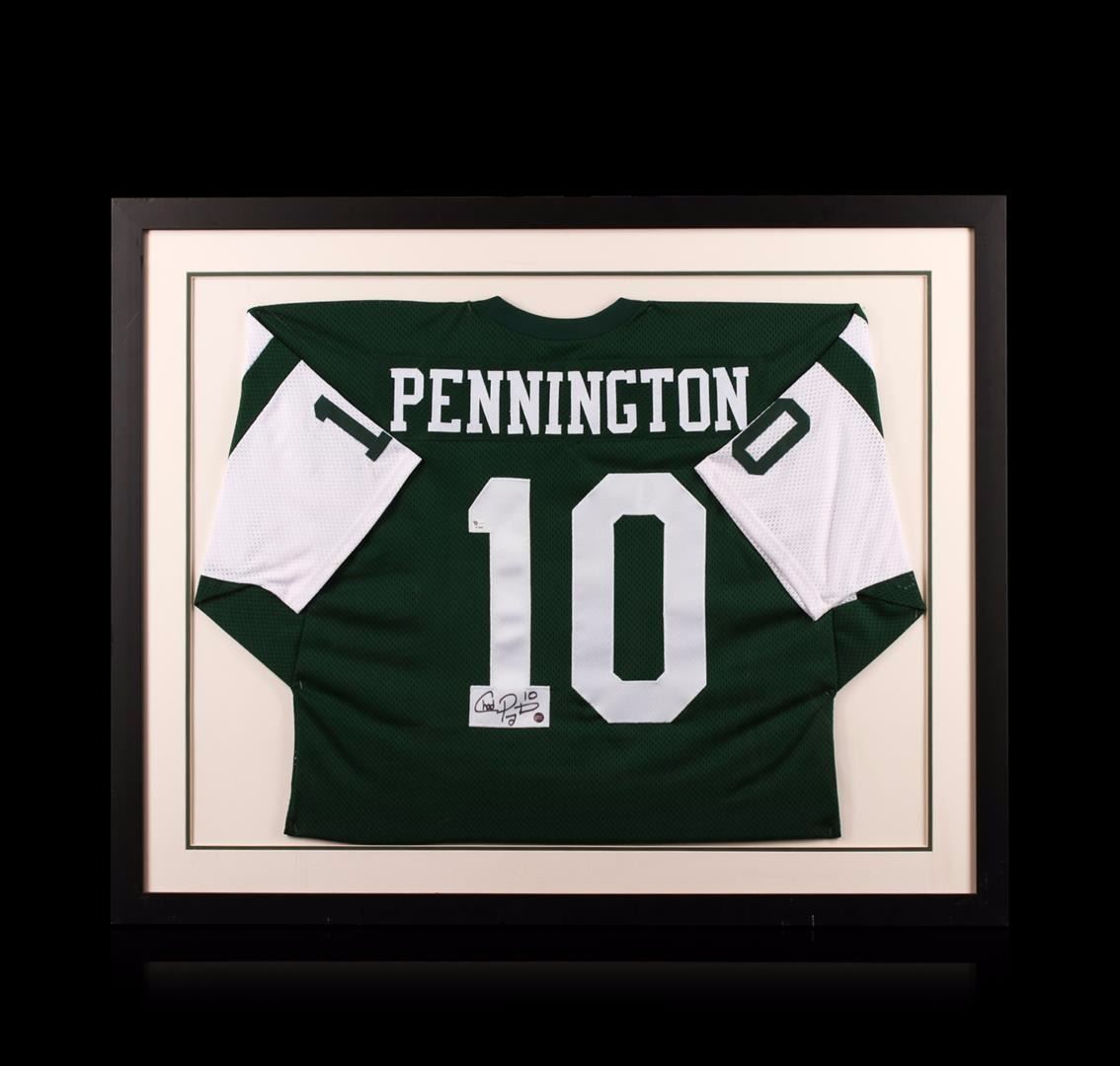 Chad Pennington Framed Autographed Jersey. Comes with Certificate of Authenticity.