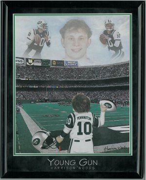Young Gun Chad Pennington New York Jets is shown in this Little Pro's Collection that has: Lithographs with Striking 3D Effect Bevel Edge Double Mats High Quality mylar & glass frame Measures 8x10 inch Ready To Hang on Your Wall Great for Home or Office!