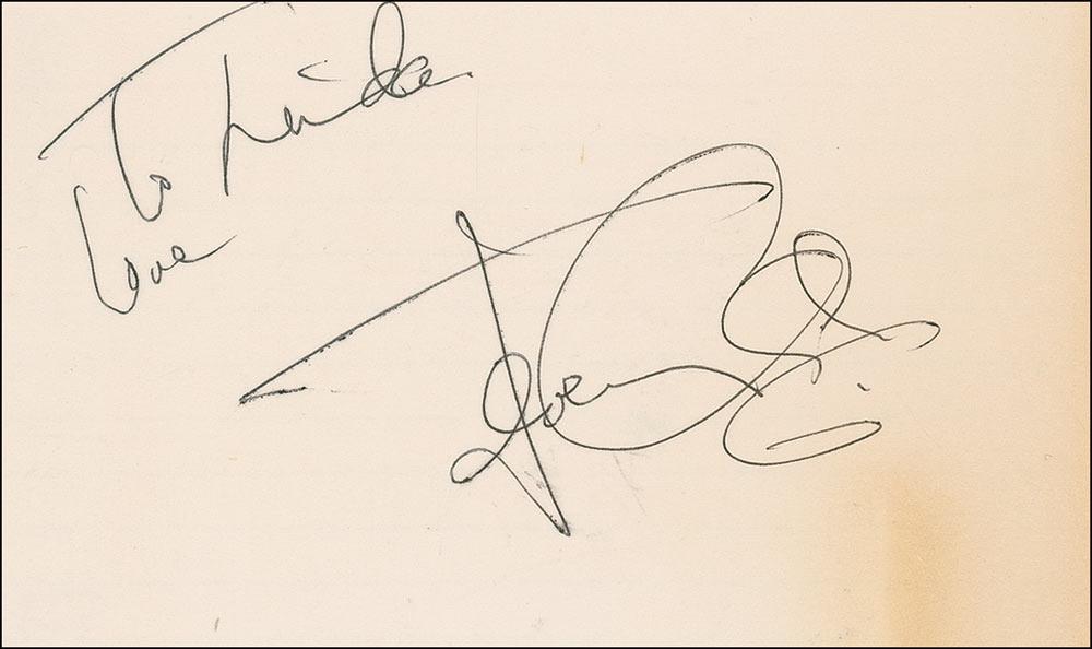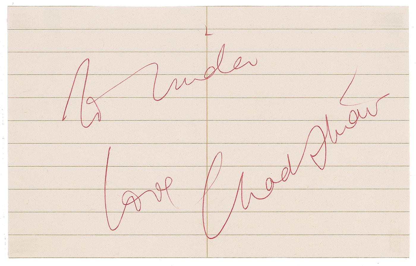 Ballpoint signature and inscription, “To Linda, Love, Chad Stuart,” on an off-white 6 x 3.75 lined slip; and a ballpoint signature, “To Linda, Love, Jeremy Clyde,” on an off-white 5 x 3 card. In fine condition, with toning to right side of Clyde’s signature.