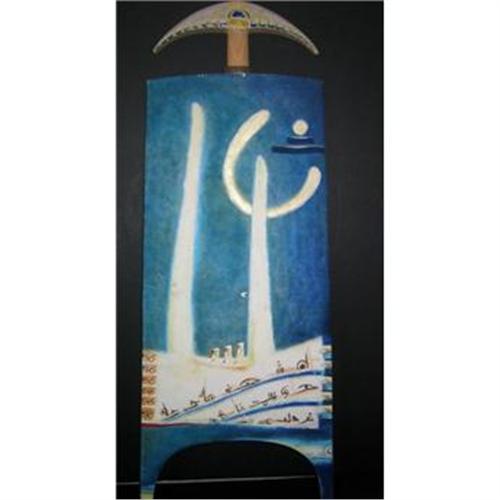 His colors are so fantastic , he use gold and other color painted in relief. and usualy is a picture representing the subsaharian country and Mosques and Coran designs