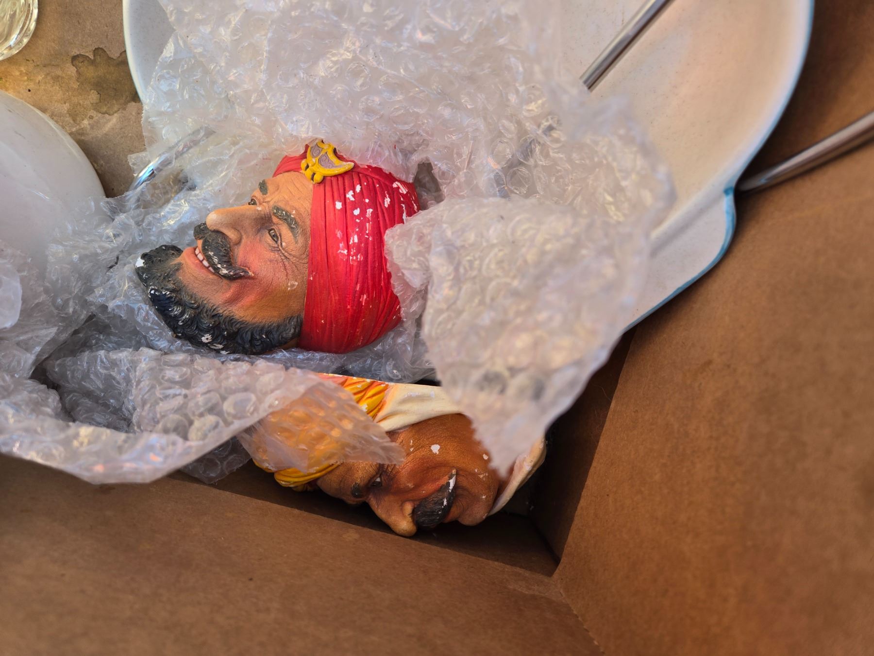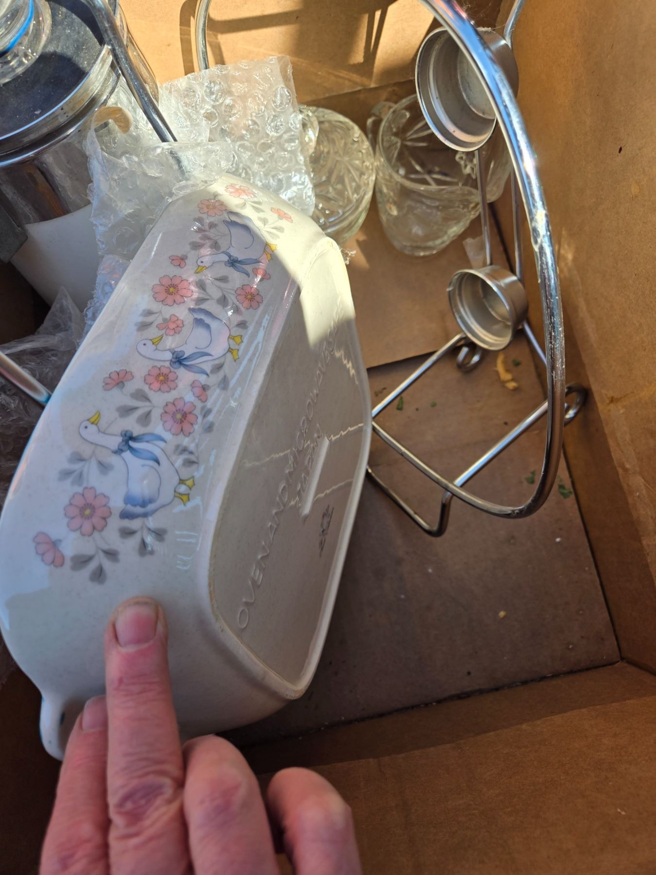 Chafing Dish with Holders, Chalkware Heads, Complete Corelle Stovetop Coffee Pot