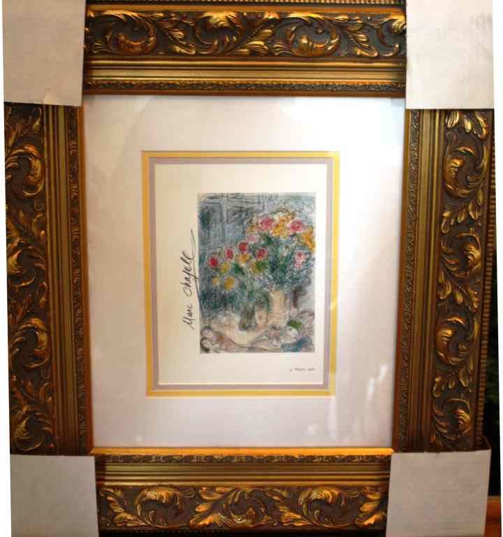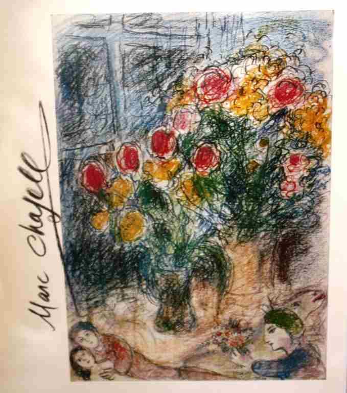 Marc Chagall - "Fleurs 1966" - Hand Signed Lithograph (Book Plate) - Professionally Framed And Matted - Mint Condition - Framed Size Appx 20 X 18 - Comes With Certificate Of Authenticity