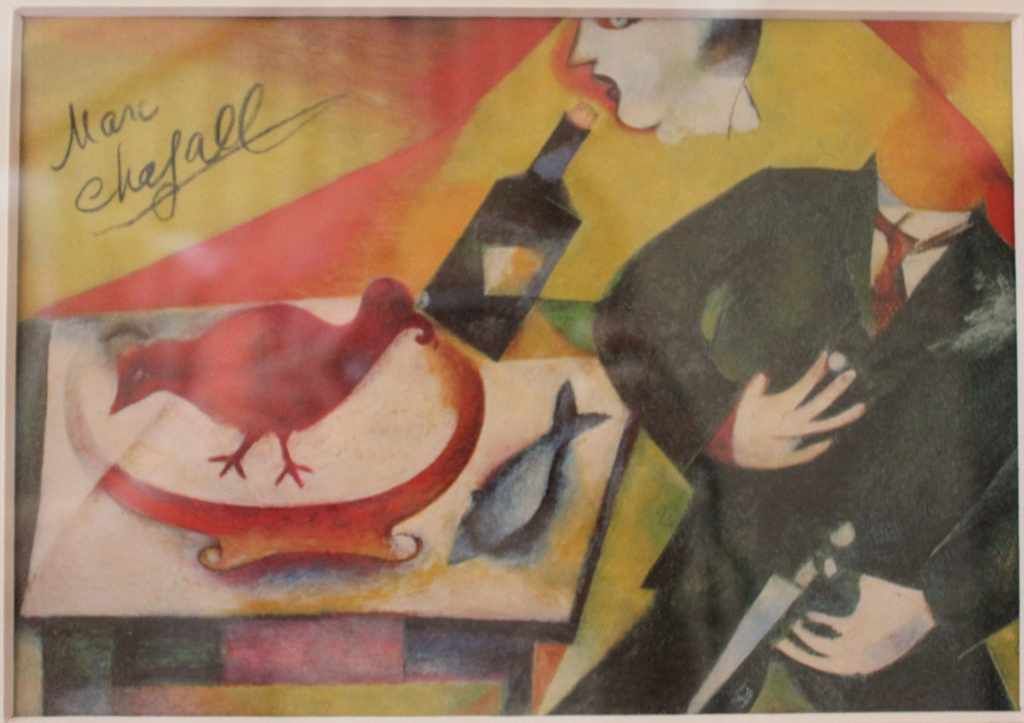 Marc Chagall - "Dinner Is Served" - Hand Signed By The Artist - Book Plate - Professionally Framed And Matted - Mint Condition - Image Size 5.75" X 8.5" - Framed Size 18.5" X 21" - Comes With Certificate Of Authenticity