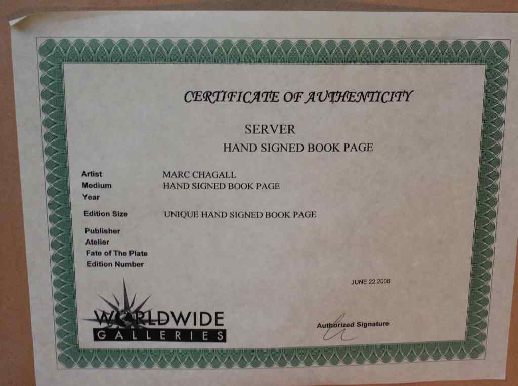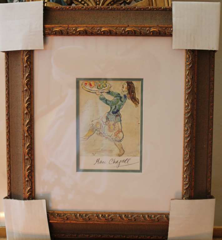 Marc Chagall - "Server" - Hand Signed By The Artist - Book Plate - Professionally Framed And Matted - Mint Condition - Image Size 7.5" X 5.75" - Framed Size 20.25" X 18" - Comes With Certificate Of Authenticity
